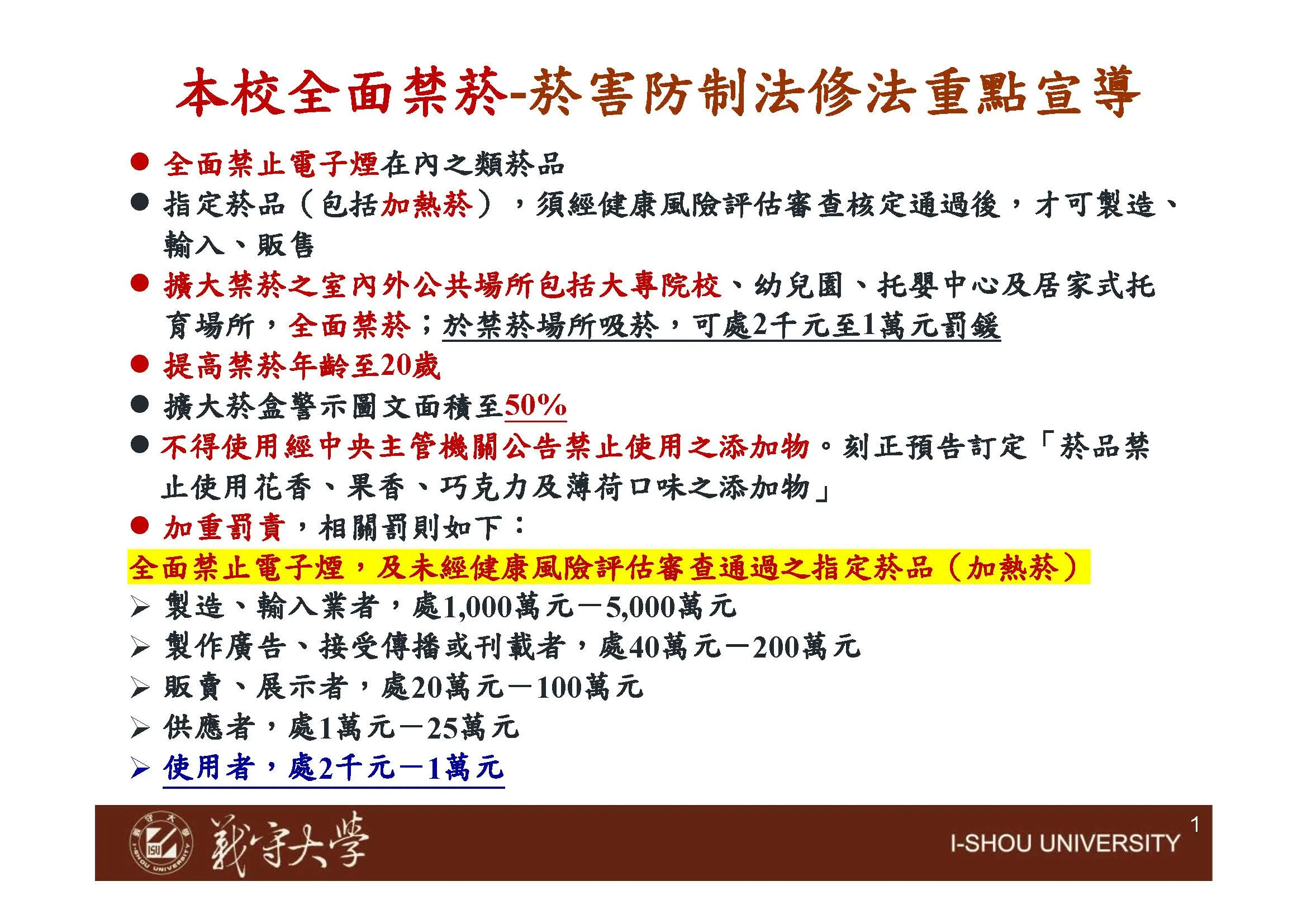 本校全面禁菸-菸害防制法修法重點宣導